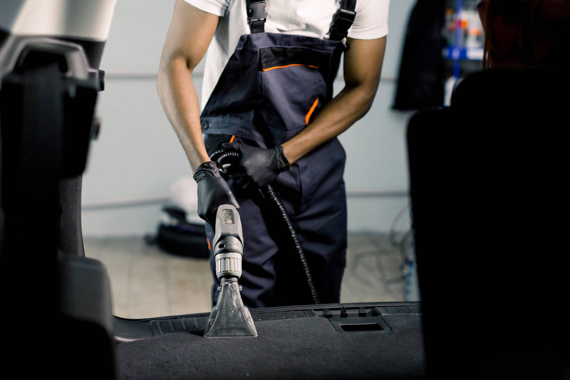 Interior vacuuming, shampoo fabric seats, mats and carpets plus wipe down of all hard surfaces. Trunk not included.